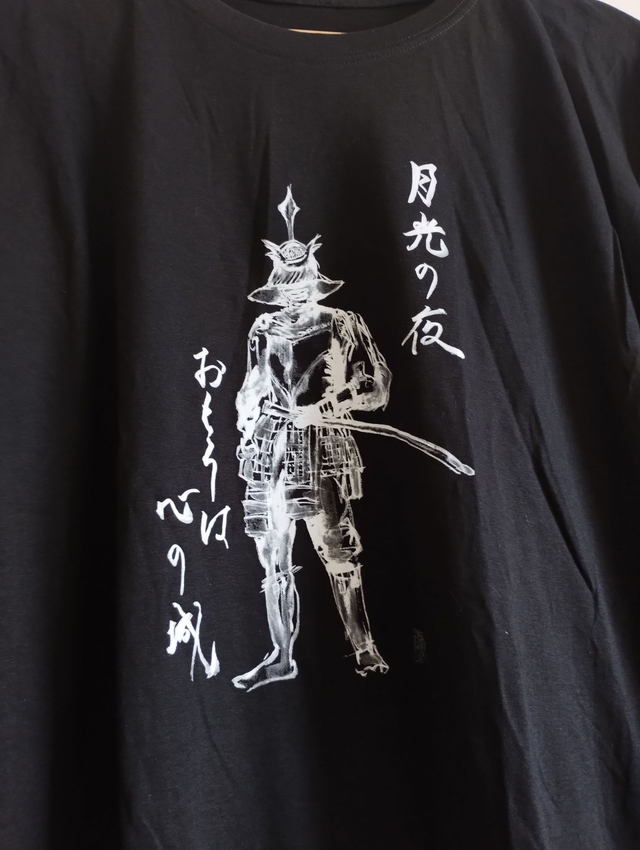 Black Color T-shirt, Samurai Pattern, Printed Long sleeve T-shirt, Cotton T-shirt